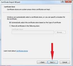 - Click Next on the “Certificate Store” screen.