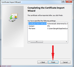 - Verify certificate information and click Finish.
