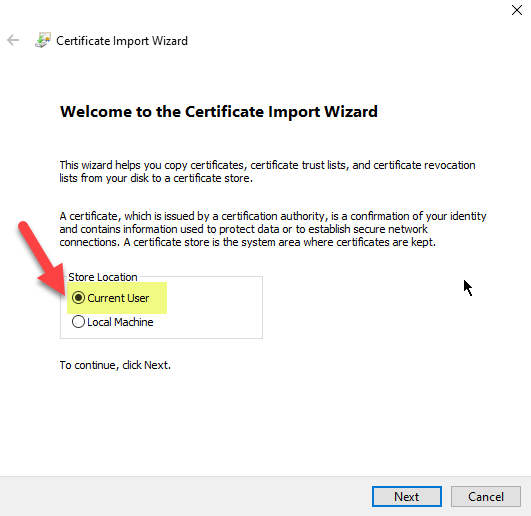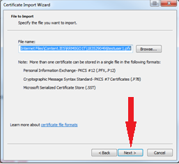 - Click Next on the Certificate Import Wizard.